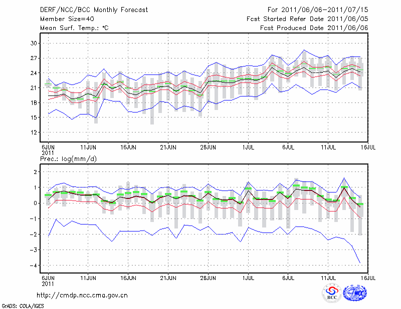 佳 木 斯 (LAT:46.49 LON:130.17) 2011-06-06        预测