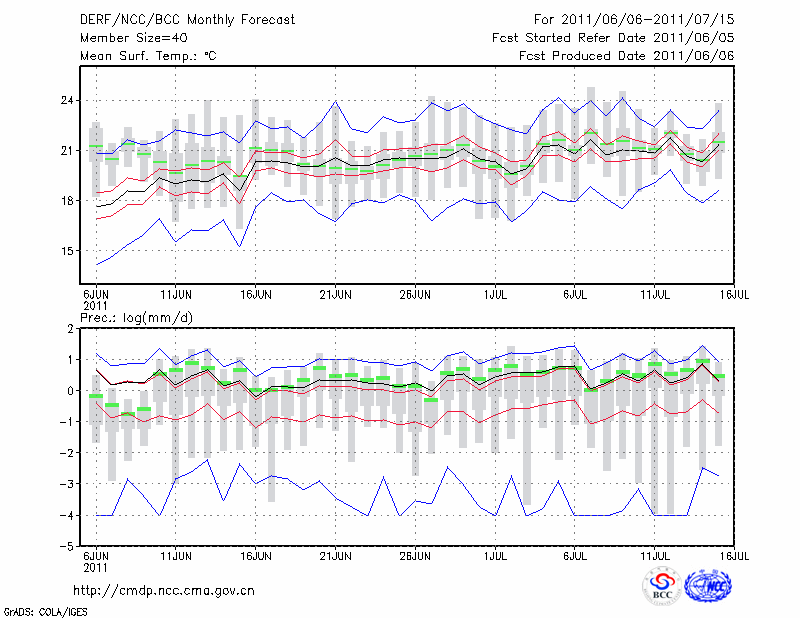 西 峰 镇 (LAT:35.73 LON:107.63) 2011-06-06        预测