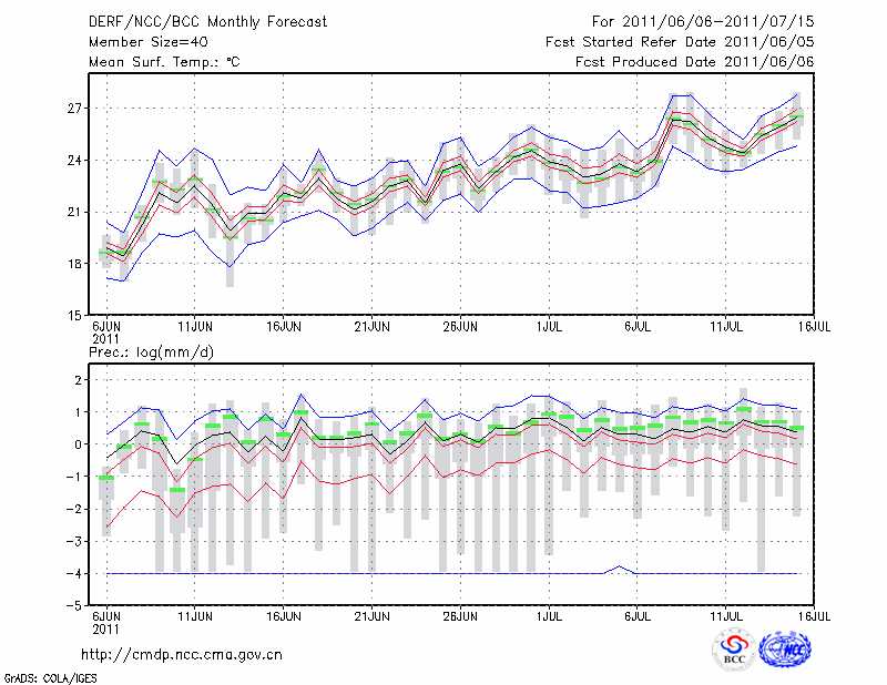 青 岛 (LAT:36.07 LON:120.33) 2011-06-06        预测