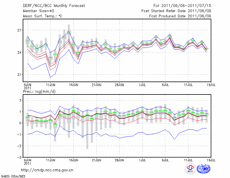蒙 自 (LAT:23.38 LON:103.38) 2011-06-06        预测
