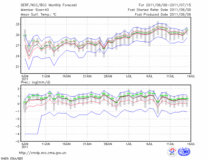蚌 埠 (LAT:32.95 LON:117.37) 2011-06-06        预测