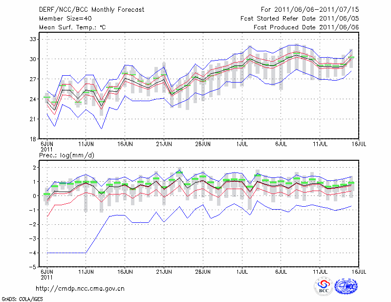 东 台 (LAT:32.87 LON:120.32) 2011-06-06        预测