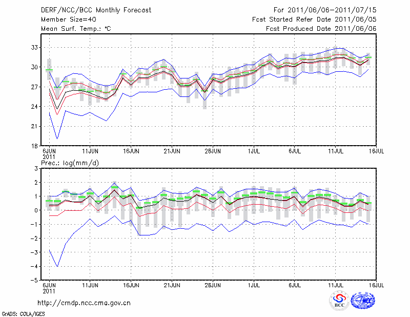 合 肥 (LAT:31.87 LON:117.23) 2011-06-06        预测