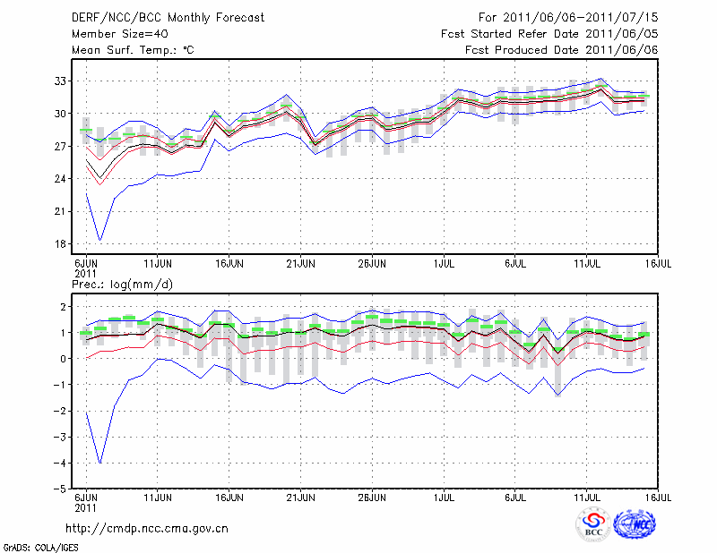 安 庆 (LAT:30.53 LON:117.05) 2011-06-06        预测