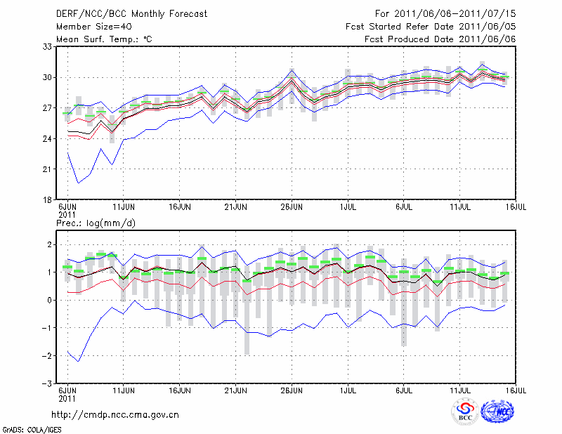 屯 溪 (LAT:29.71 LON:118.28) 2011-06-06        预测