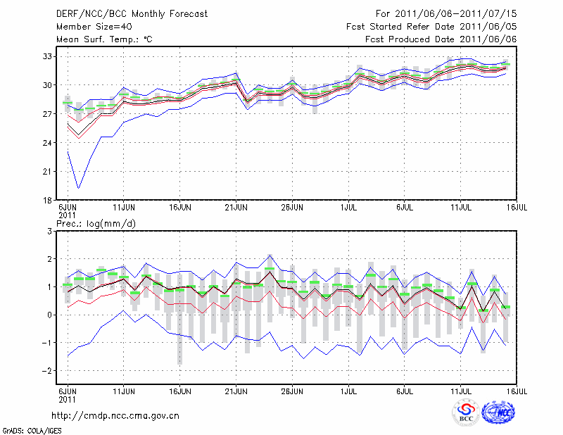 南 昌 (LAT:28.60 LON:115.92) 2011-06-06        预测