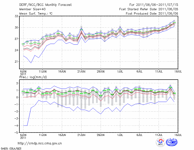 温 州 (LAT:28.02 LON:120.67) 2011-06-06        预测