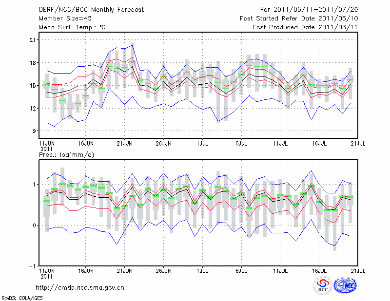甘 孜 (LAT:31.62 LON:100.00) 2011-06-11        预测