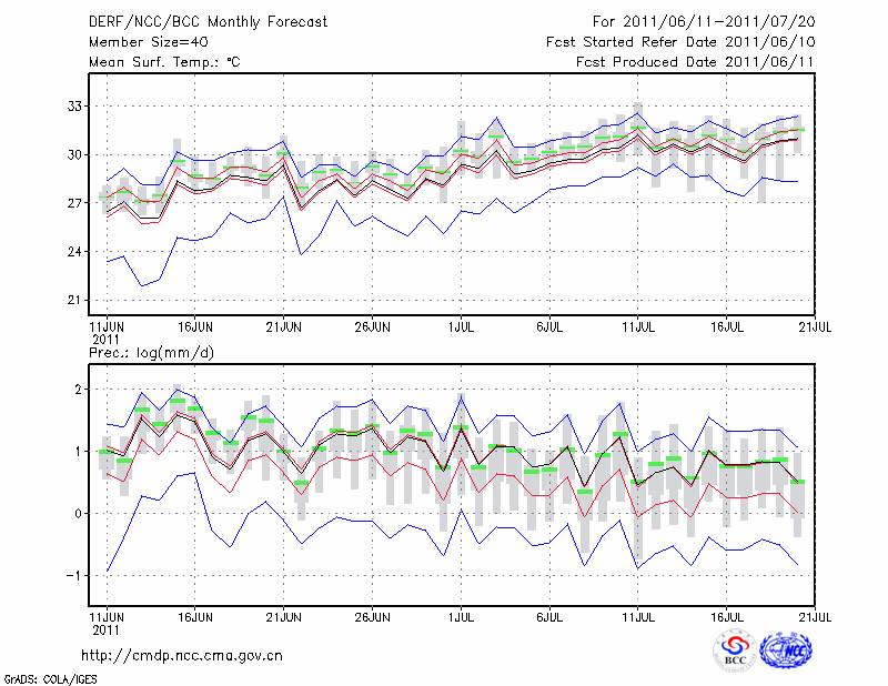 岳 阳 (LAT:29.38 LON:113.08) 2011-06-11        预测