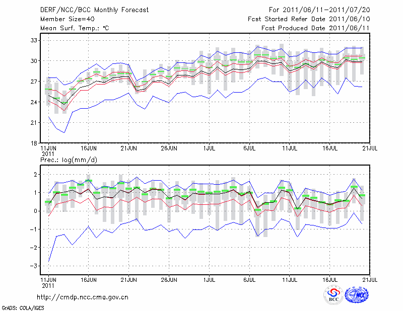 南 京 (LAT:32.00 LON:118.80) 2011-06-11        预测