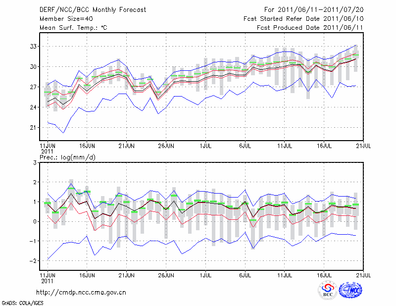 合 肥 (LAT:31.87 LON:117.23) 2011-06-11        预测