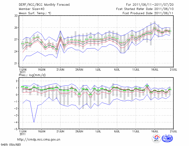 温 州 (LAT:28.02 LON:120.67) 2011-06-11        预测