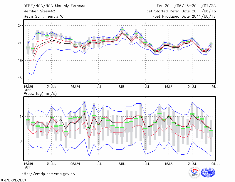 丽 江 (LAT:26.83 LON:100.47) 2011-06-16        预测