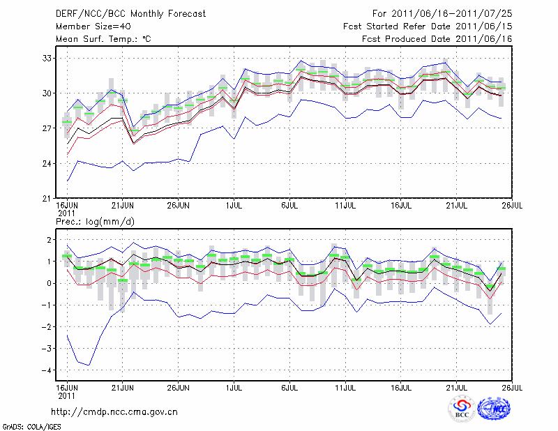 南 京 (LAT:32.00 LON:118.80) 2011-06-16        预测