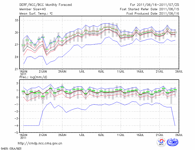 东 台 (LAT:32.87 LON:120.32) 2011-06-16        预测