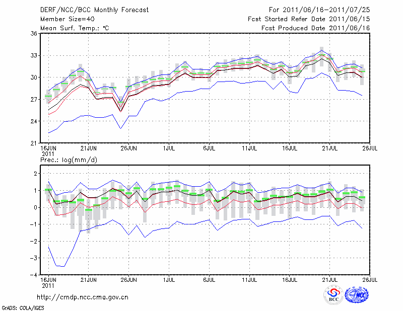 合 肥 (LAT:31.87 LON:117.23) 2011-06-16        预测