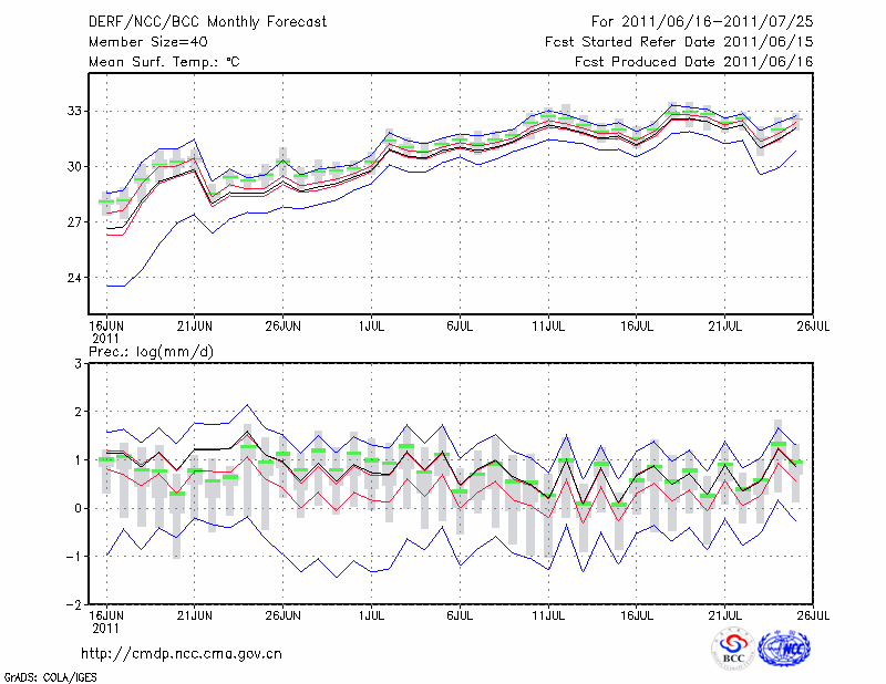 南 昌 (LAT:28.60 LON:115.92) 2011-06-16        预测