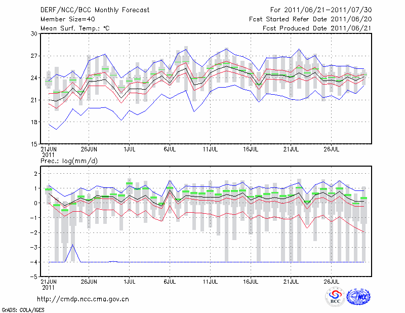 哈 尔 滨 (LAT:45.75 LON:126.77) 2011-06-21        预测