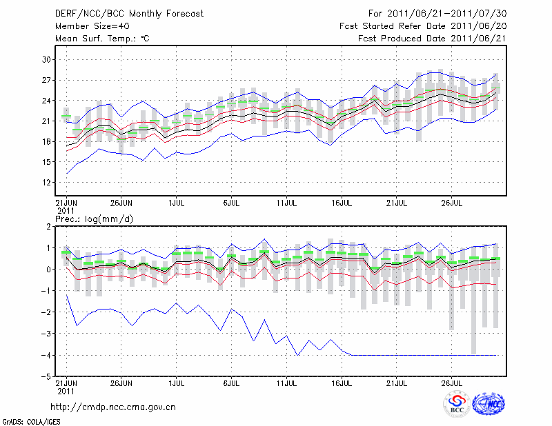 延 吉 (LAT:42.88 LON:129.47) 2011-06-21        预测