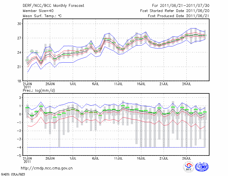 青 岛 (LAT:36.07 LON:120.33) 2011-06-21        预测