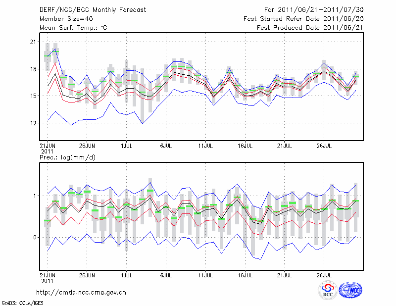 甘 孜 (LAT:31.62 LON:100.00) 2011-06-21        预测