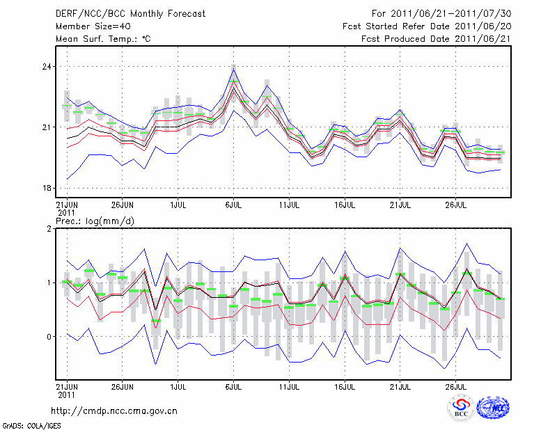 丽 江 (LAT:26.83 LON:100.47) 2011-06-21        预测