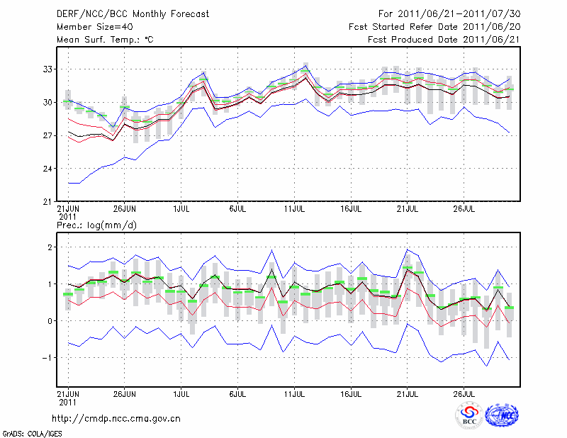 汉 口 (LAT:30.62 LON:114.13) 2011-06-21        预测
