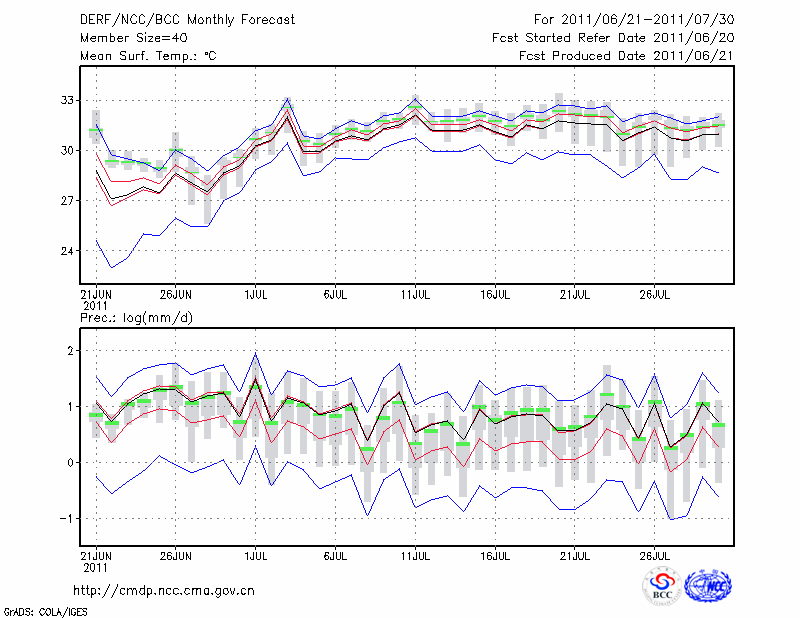 岳 阳 (LAT:29.38 LON:113.08) 2011-06-21        预测