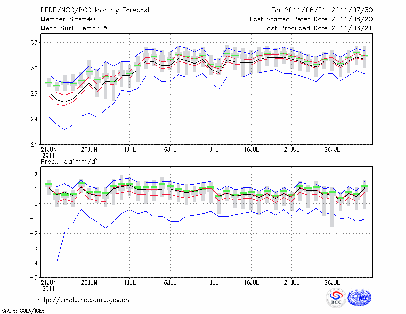 杭 州 (LAT:30.23 LON:120.17) 2011-06-21        预测
