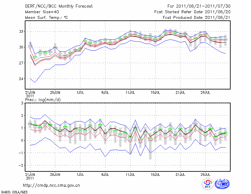 南 昌 (LAT:28.60 LON:115.92) 2011-06-21        预测