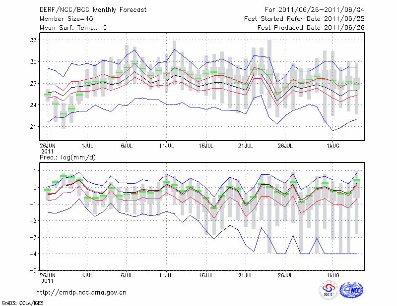 乌 苏 (LAT:44.43 LON:84.66) 2011-06-26        预测