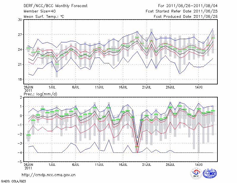 银 川 (LAT:38.48 LON:106.22) 2011-06-26        预测
