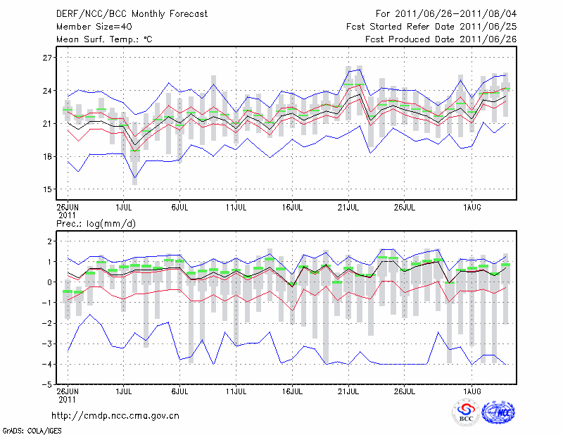 西 峰 镇 (LAT:35.73 LON:107.63) 2011-06-26        预测
