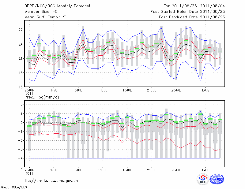 锡林浩特 (LAT:43.95 LON:116.07) 2011-06-26        预测