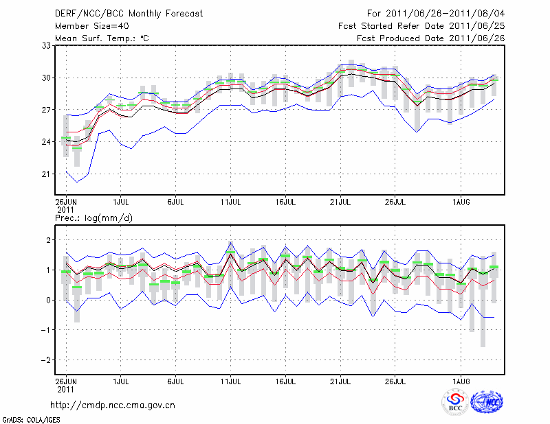 恩 施 (LAT:30.28 LON:109.47) 2011-06-26        预测