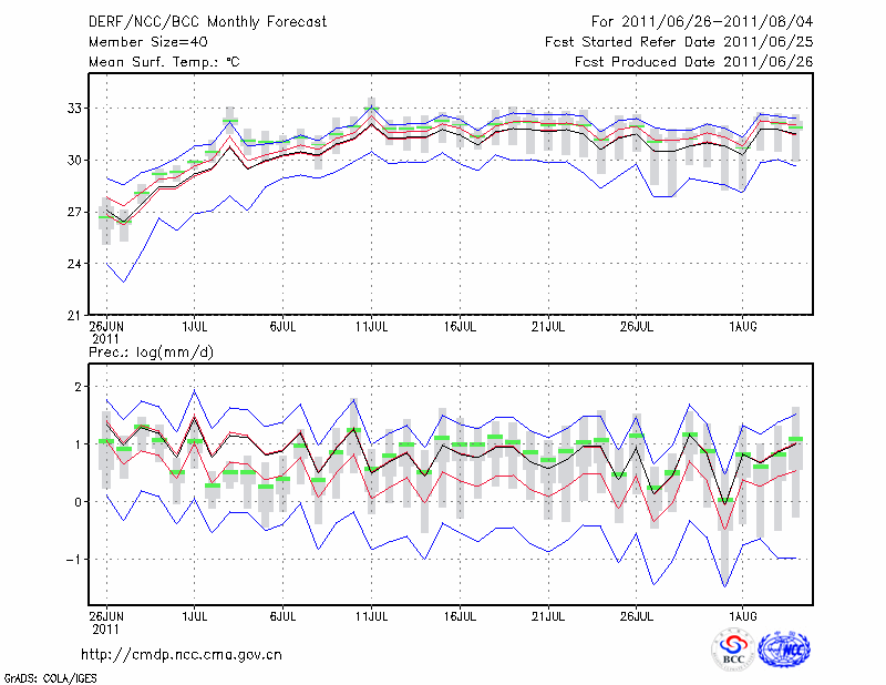 岳 阳 (LAT:29.38 LON:113.08) 2011-06-26        预测