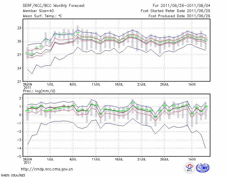 南 京 (LAT:32.00 LON:118.80) 2011-06-26        预测