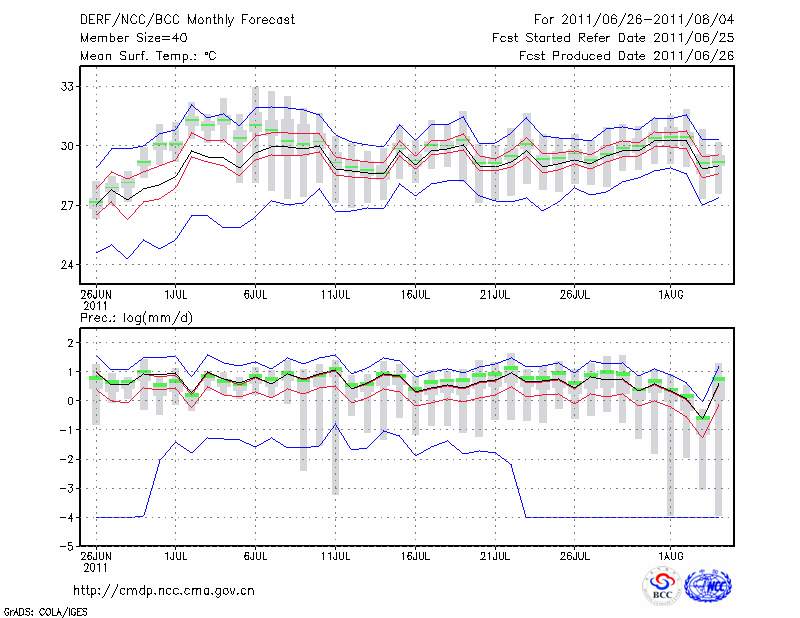 东 台 (LAT:32.87 LON:120.32) 2011-06-26        预测