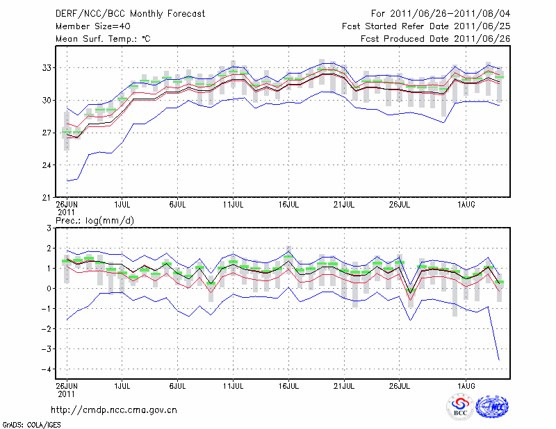 安 庆 (LAT:30.53 LON:117.05) 2011-06-26        预测