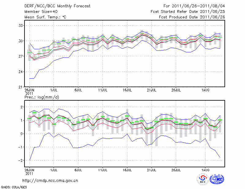 屯 溪 (LAT:29.71 LON:118.28) 2011-06-26        预测