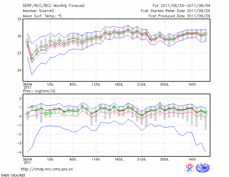 宁 波 (LAT:29.86 LON:121.56) 2011-06-26        预测