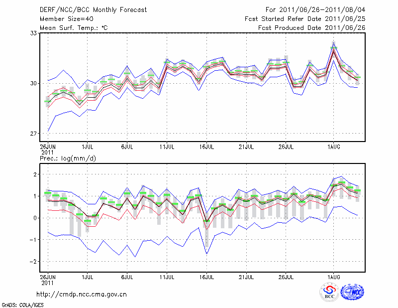 福 州 (LAT:26.08 LON:119.28) 2011-06-26        预测