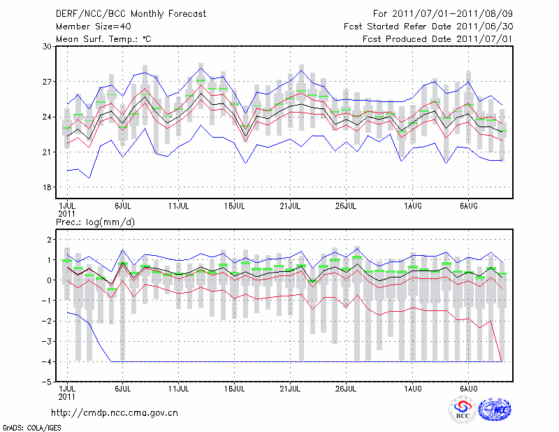 哈 尔 滨 (LAT:45.75 LON:126.77) 2011-07-01        预测