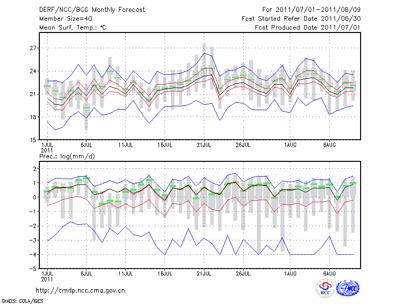 西 峰 镇 (LAT:35.73 LON:107.63) 2011-07-01        预测
