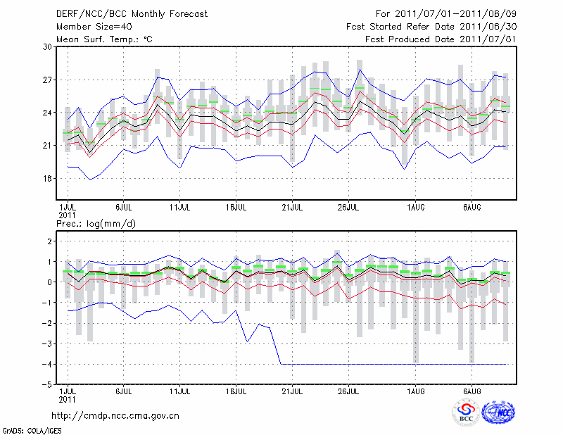牡 丹 江 (LAT:44.57 LON:129.60) 2011-07-01        预测