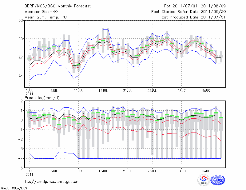 潍 坊 (LAT:36.70 LON:119.08) 2011-07-01        预测