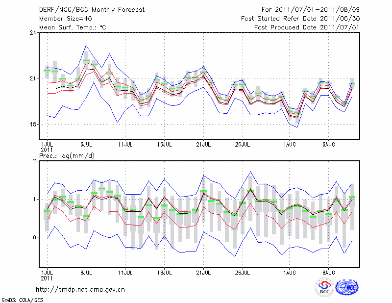 丽 江 (LAT:26.83 LON:100.47) 2011-07-01        预测