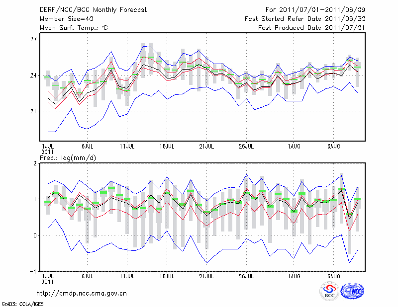 毕 节 (LAT:27.30 LON:105.23) 2011-07-01        预测
