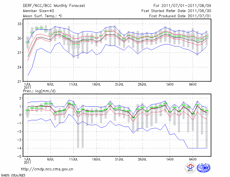 南 京 (LAT:32.00 LON:118.80) 2011-07-01        预测