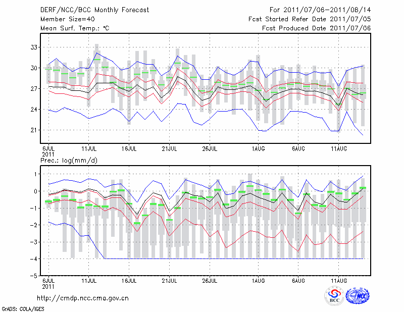 乌 苏 (LAT:44.43 LON:84.66) 2011-07-06        预测
